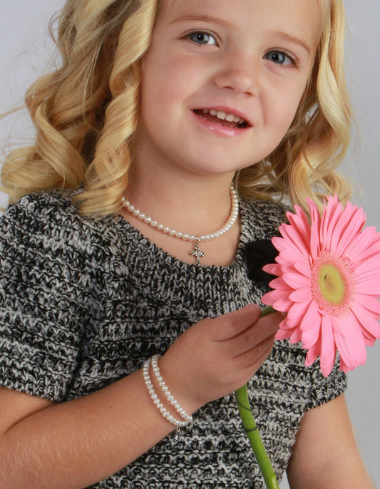 Cherished Moments - Kids Sterling Silver Double Strand Child's Pearl Bracelet: Large 6-12 Years