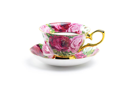 Grace Teaware - Rose Bloom Gold 7oz Bone China Tea Cup and Saucer One Set