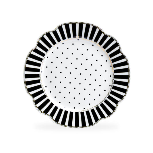 Grace Teaware - Josephine Black Stripes Dots Scallop Porcelain Dessert Plate