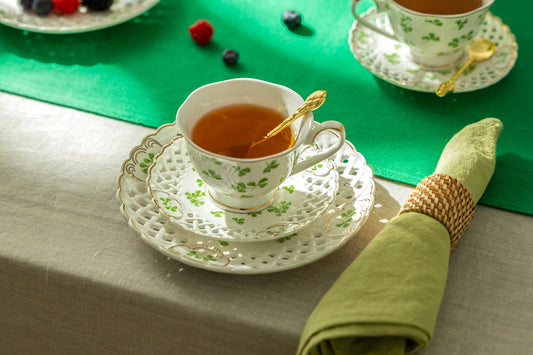 Grace Teaware - Shamrock Fine Porcelain 7oz Tea Cup and Pierced Saucer
