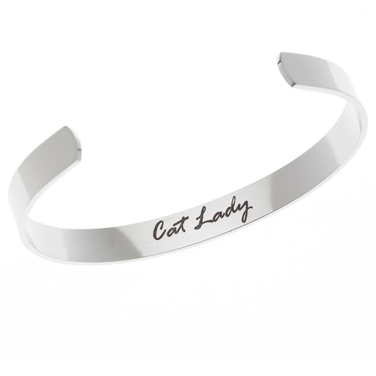 Joyful Sentiments - "Cat Lady" Engraved Stainless Steel Cuff Bracelet