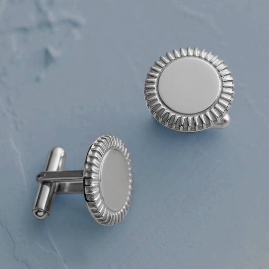 Joyful Sentiments - Stainless Steel Round Cufflinks with Elegant Milgrain Edge