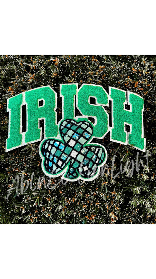 ABLN Boutique - St Paddy's Irish Shamrock Sequin Chenille Patch Sweatshirt: Adult Medium / White