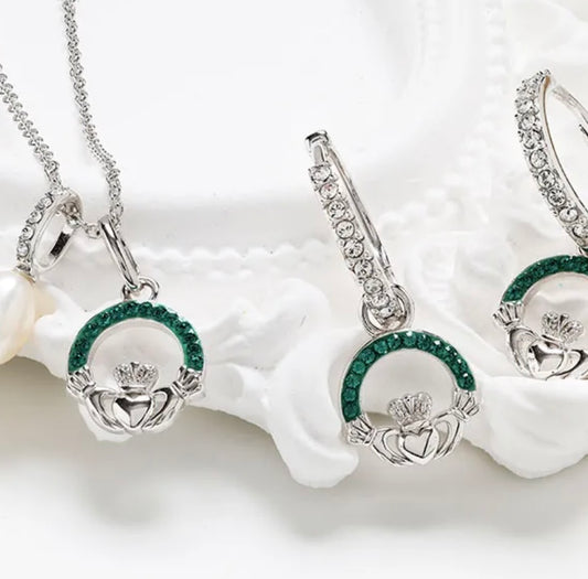 ShanOre Sterling Silver Claddagh Necklace With Pearl & Green Crystals