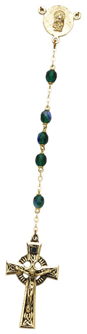 Irish rosary, faceted emerald beads w/celtic cross, w/gift card, gift boxed.