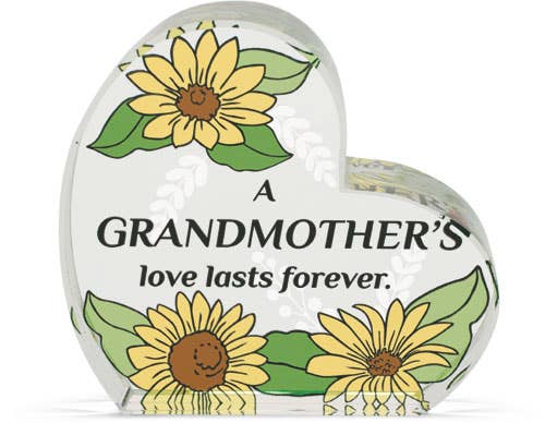 This Relationship Glass Plaque features colorful flowers and sentiments in the center of the heart. Laser-etched vines give this plaque unique depth.