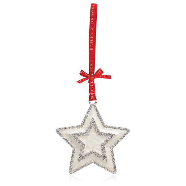 This ornament is sure to stand out on your tree and will be the envy of your friends and neighbors. The ornament comes packaged in a lovely star shaped box to Impress your Friends and Family with the perfect gift, a gorgeous Bailey & Brook holiday decoration. Box measures 7" x 7" and ornaments are 3-4" high.
