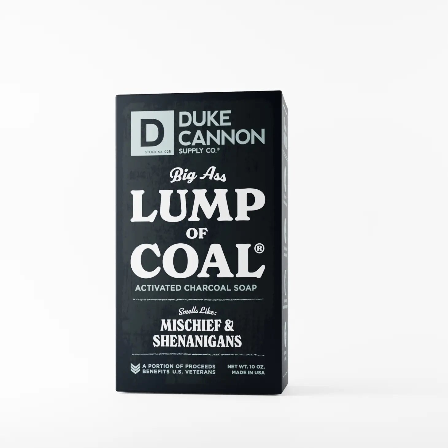 • Legend has it St. Nick used to reward misbehaving children with bundles of twigs, bags of salt, and strings of garlic. Considering these alternatives, a lump of fossil fuel doesn't sound half bad. Duke Cannon honors this tradition with his Big Ass Lump of Coal - a premium soap formulated with activated charcoal and featuring the masculine scent of bergamot and black pepper. It's the best way to clean up after mischief and shenanigans. Product Specs: 3x bigger and better smelling than traditional lumps of coal Made in the USA by humans, not elves May encourage mischief and/or general tomfoolery A rich, masculine scent of bergamot and black pepper that smells nice, not naughty According to Cindy in Accounting, this is a "super cute" gift for guys. Size: 10 oz.