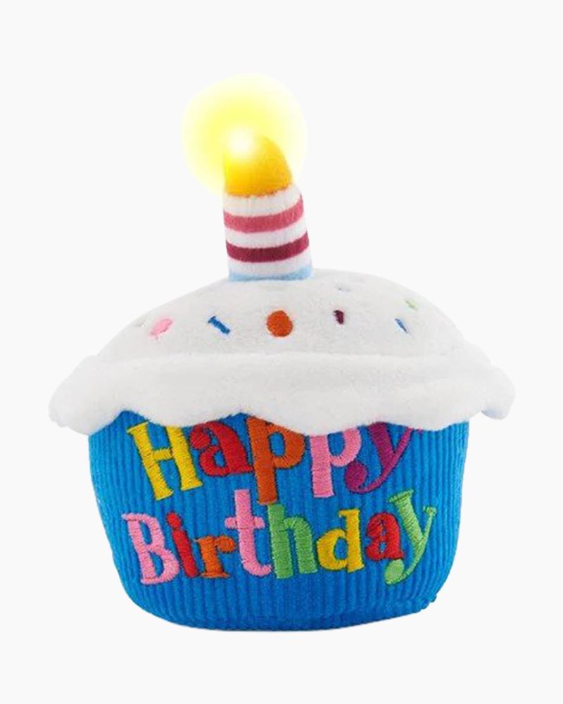 When squeezed, these cute cupcake's candle lights up and they sing "Happy Birthday."