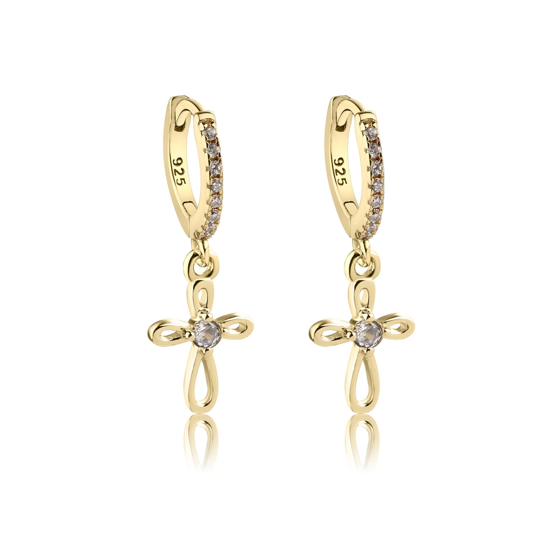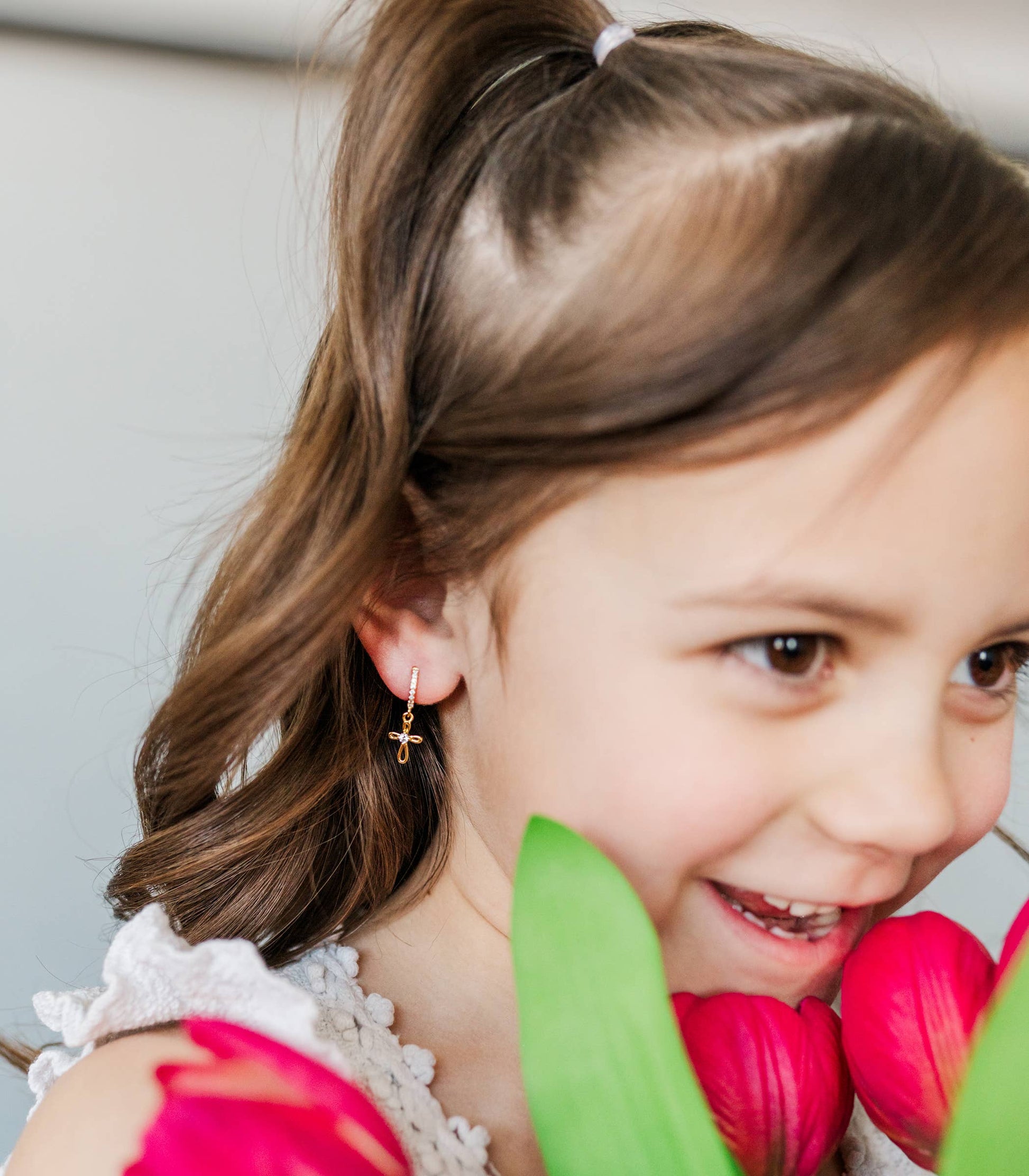 Cherished Moments - 14K Gold-Plated Huggie with Cross Earrings for Kids, Girls