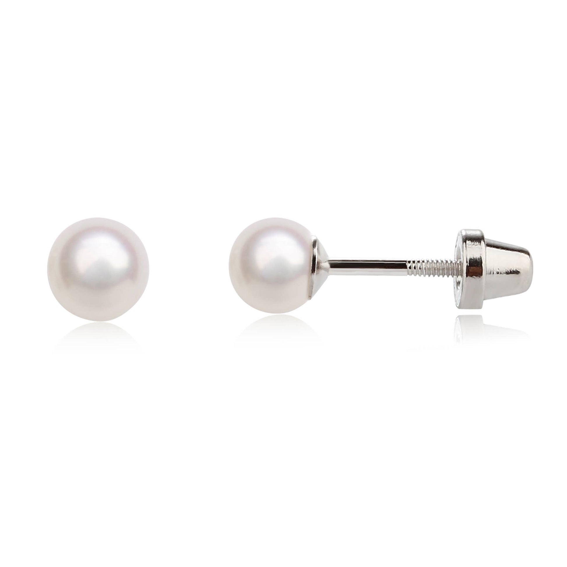 Perfect Baptism Gift! Simple and classic sterling silver pearl stud earrings for baptism or christening gift. These soft white freshwater pearl earrings have screw backs that are so nice for infants, babies, and toddlers since they stay secure and protect the backs of their little ears. Earrings are hypoallergenic, nickel-free and are made with genuine .925 sterling silver and will not irritate sensitive ears. Special gift she will cherish forever.