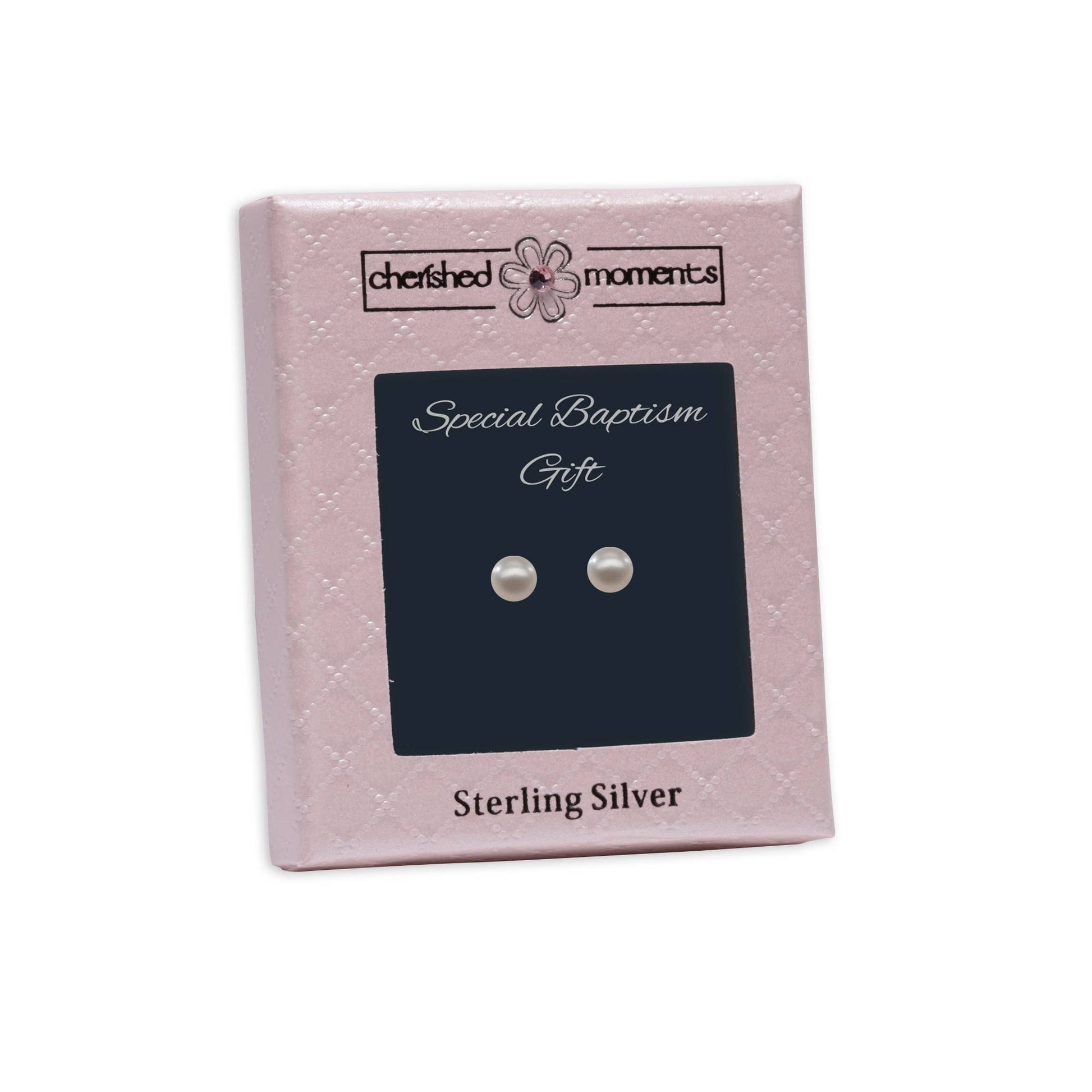 Cherished Moments - Sterling Silver Baby Baptism Pearl Earrings Christening Gift