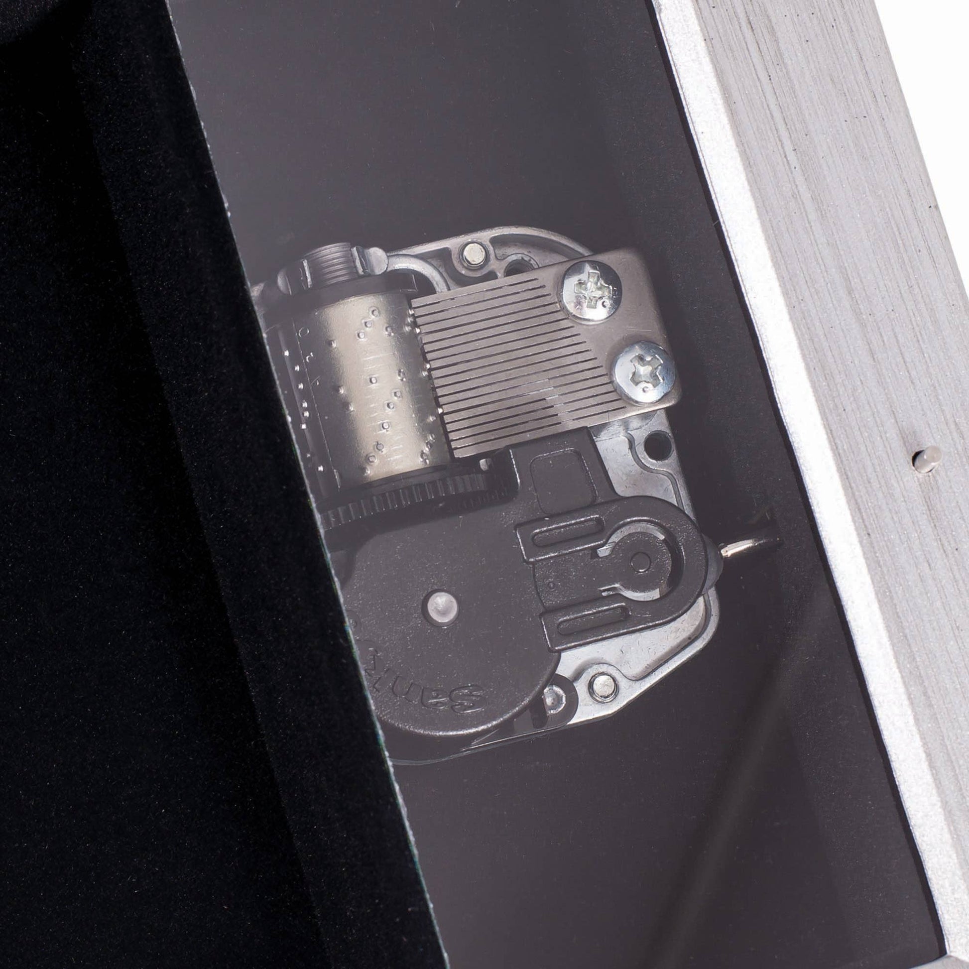 Petite Silver Tone Jeweled Music Box in champagne silver tone finish. Beaded jewels frame the hinged lid. Jewelry box measures approximately 6 x 4 x 2 inches; Window opening hold 4 x 2 inch personal photo. Black velvet lined interior; Decorative bun feet are padded to protect table top and shelf surfaces. Great for floral arrangements; Individually boxed.
