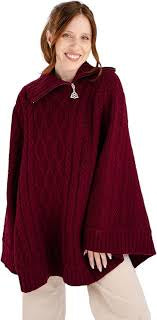 Look fancy and stay warm on any day in the cold season with our gorgeous Irish poncho. It is knit from merino wool, which is synonymous with warmth, comfort, and durability. Merino wool fibers are incredibly strong, so this material is great at withstanding everyday wear and tear without losing its shape or softness. This chic poncho features a cowl neck collar with a zipper that offers versatility in terms of styling, so you can adjust it based on how cold it is or based on your style preference.