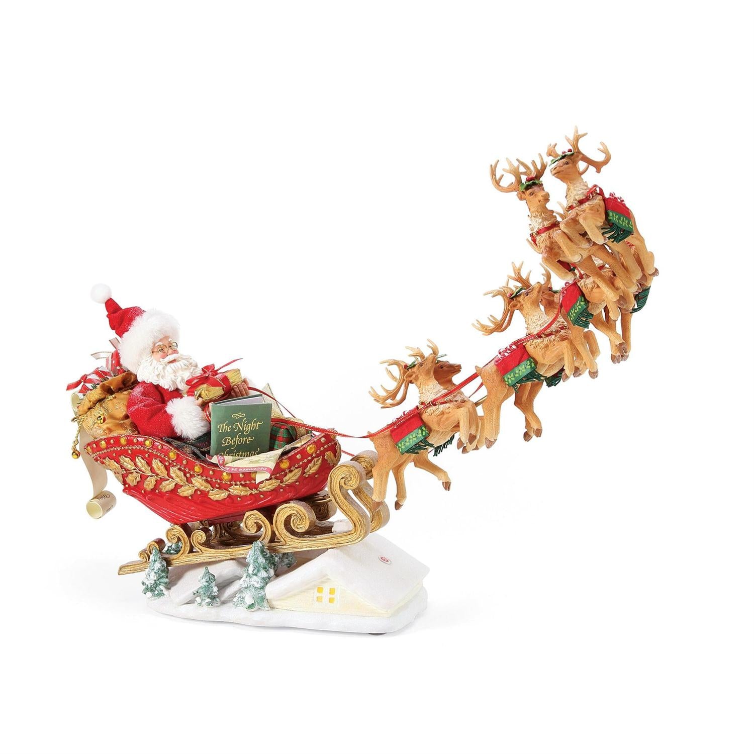 Plays Santa's voice reading, Twas the Night before christmas Poem. 3 AA batteries not included. some assembly needed.