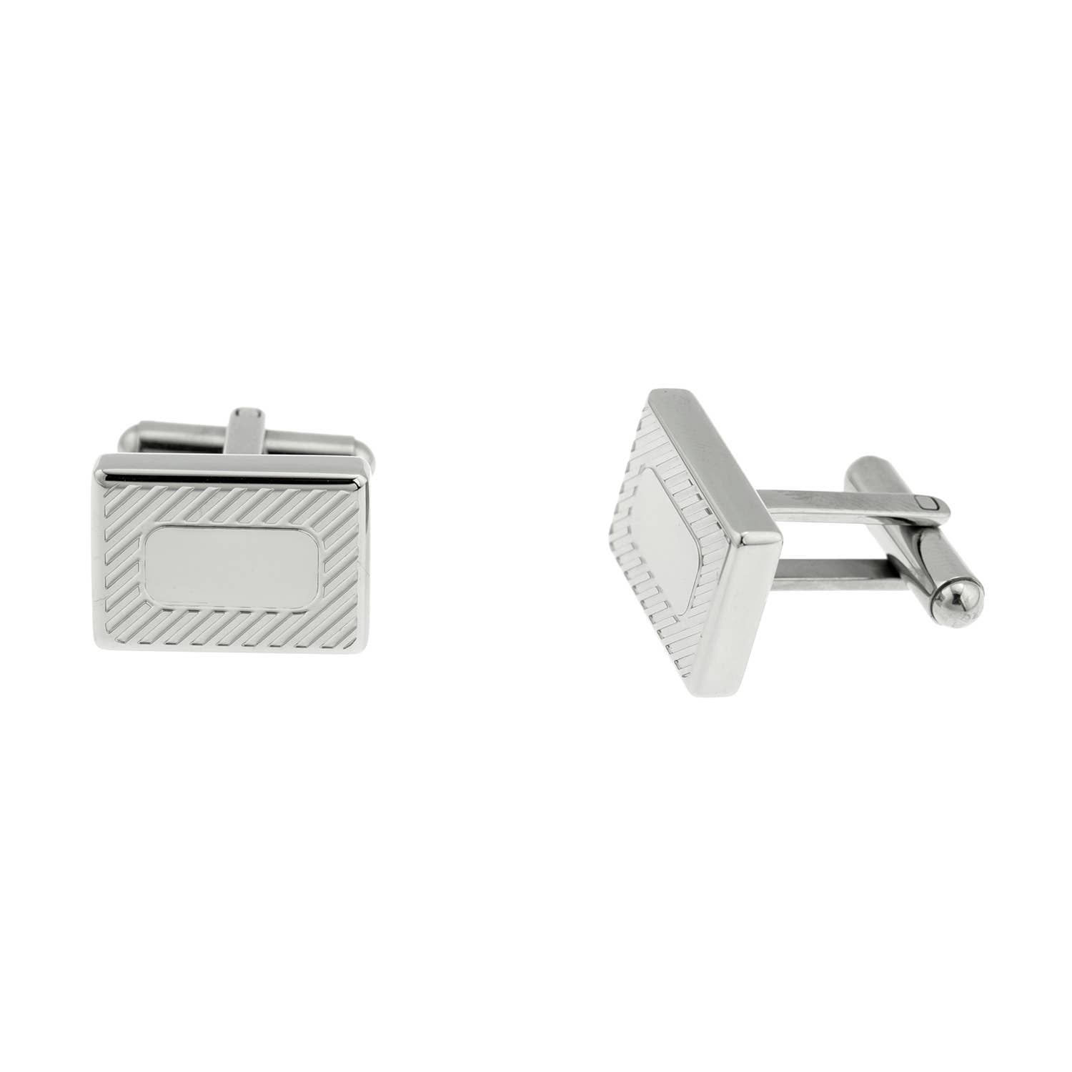 Elevate your formal attire with these sophisticated stainless steel cuff links, featuring a sleek rectangular shape with eye-catching diagonal grooves. The smooth center provides the perfect canvas for personalized engraving, allowing you to commemorate a special occasion or add a monogram for a truly one-of-a-kind accessory. Crafted from durable, tarnish-resistant stainless steel, these cuff links are built to last and add a polished touch to any dress shirt.
