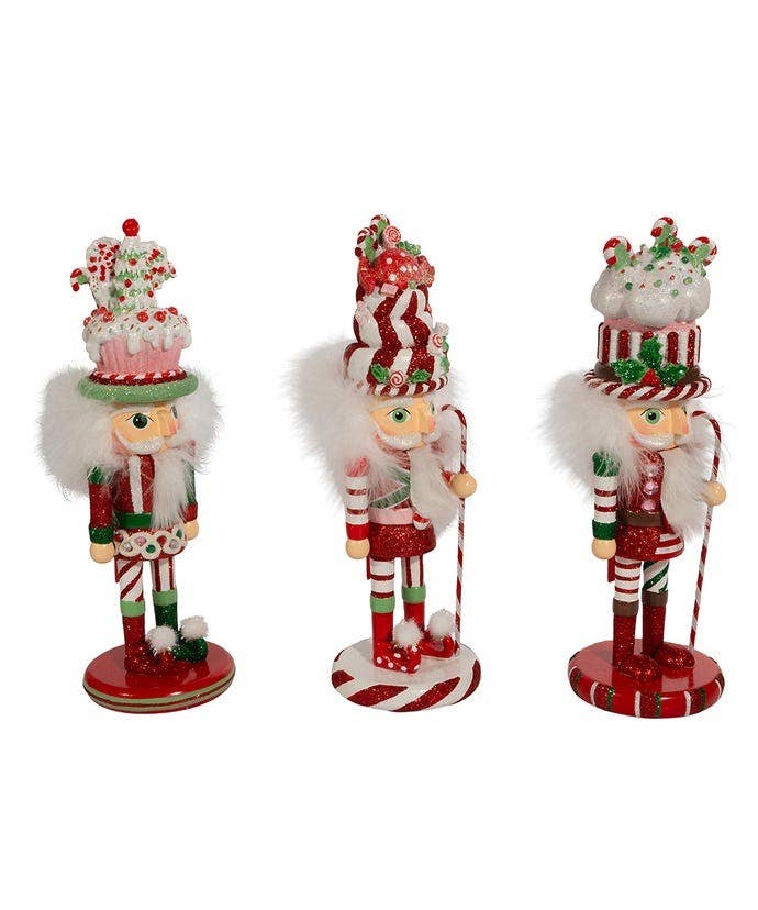 10"HOLLY WOOD CANDY & CAKE FUN HATS NUTCRACKERS 3/ASSTD. sold separately