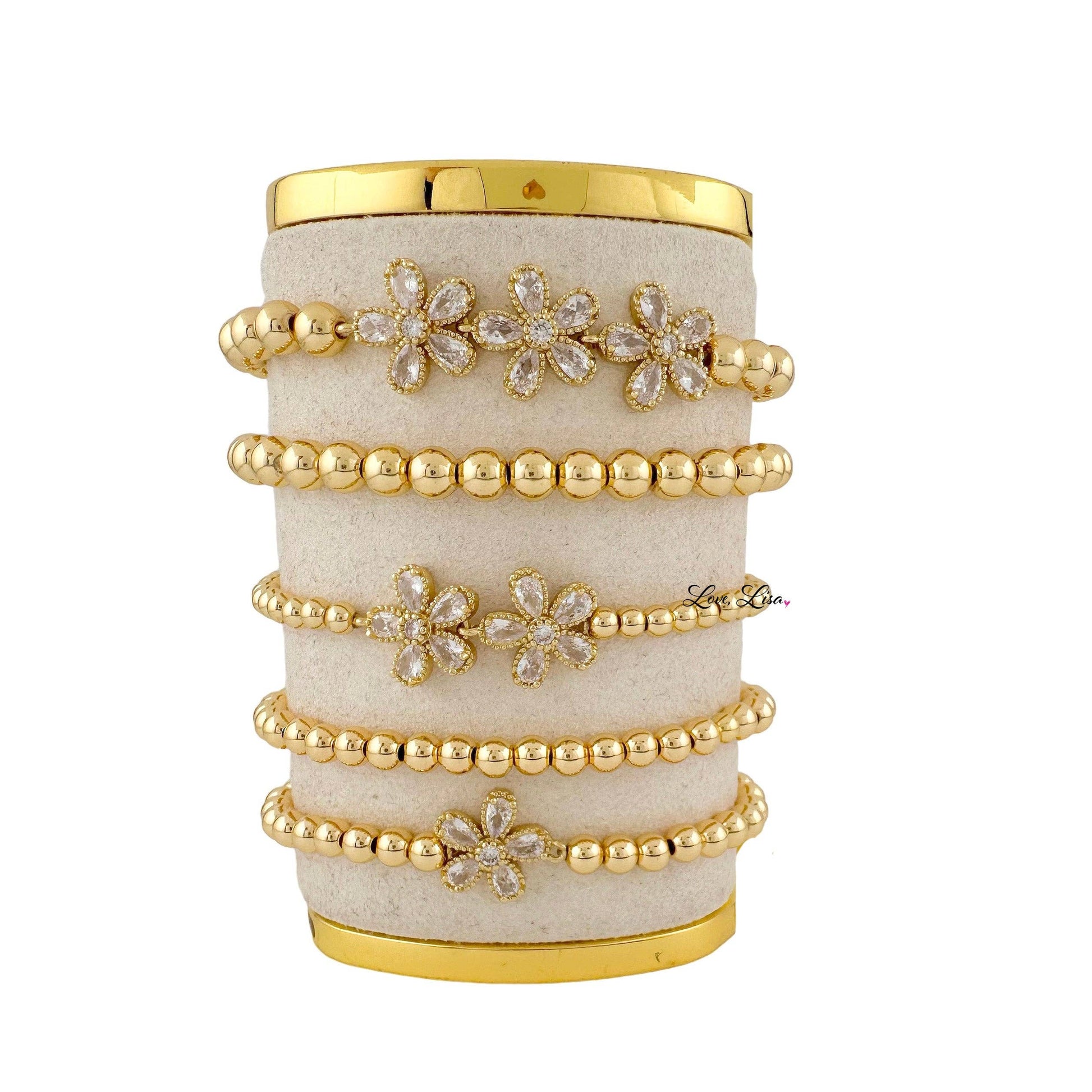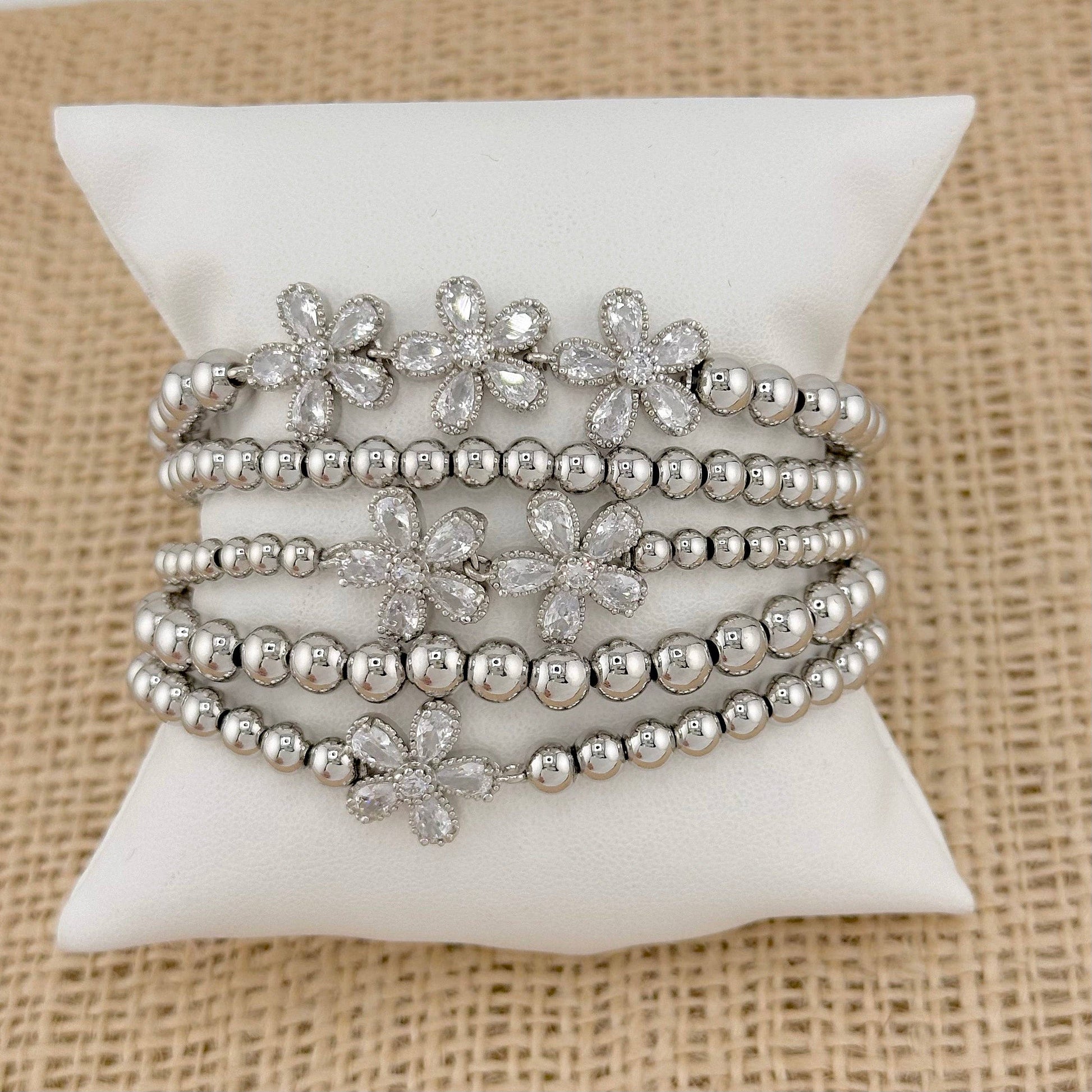 Love, Lisa - Felicity Floral Collection of Bracelets: Silver / 3 Flower Bracelet (6mm)