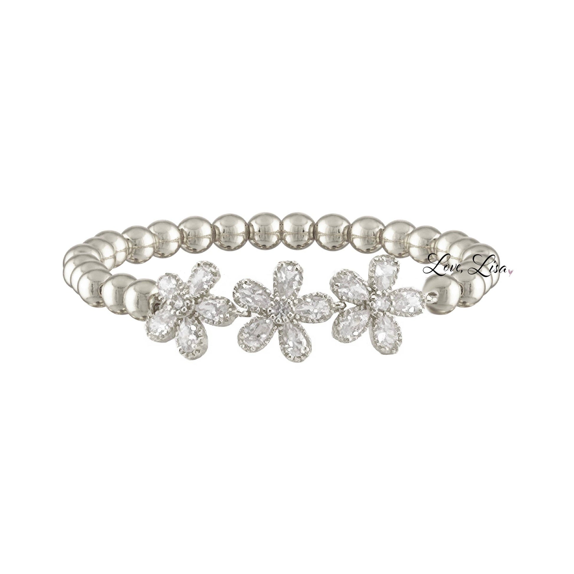 Love, Lisa - Sheila Floral Mom Collection of Bracelets: Mom Flower Bracelet / Silver