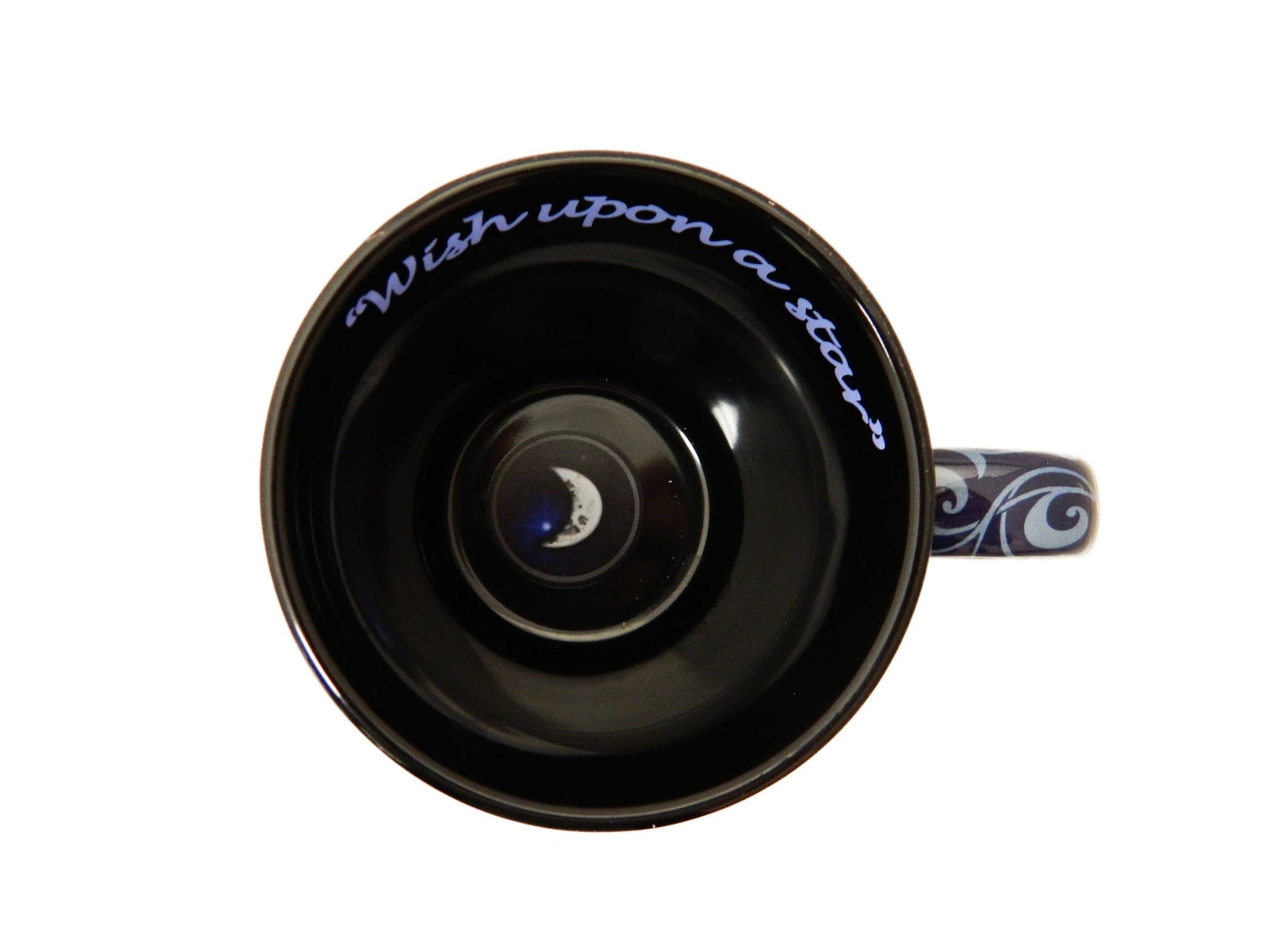 Lisa Parker 12 oz latte mug displaying the artist name and "Wish Upon a Star" along the inside rim. The artwork includes cats or kittens, a moon and a night sky filled with stars.
