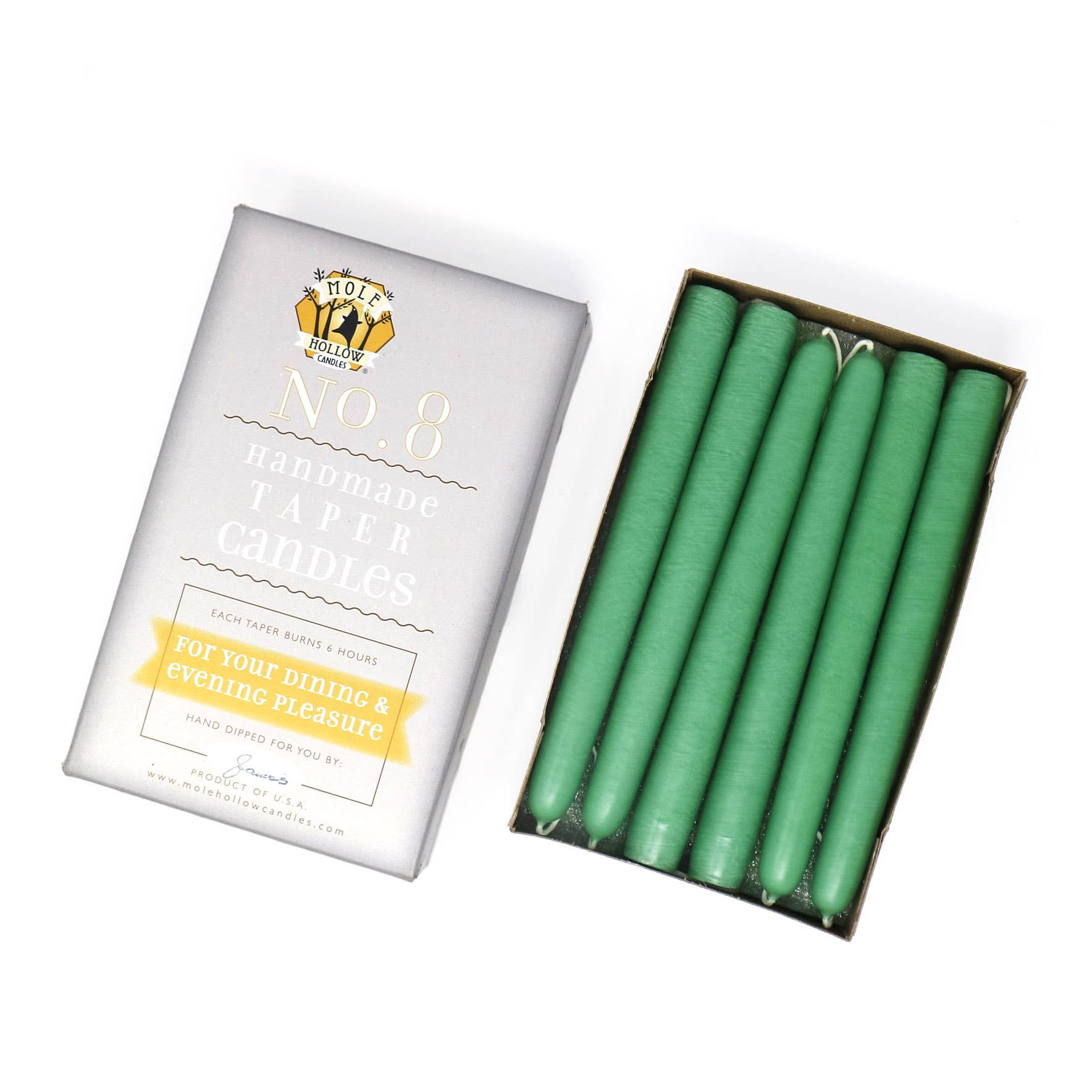 Mole Hollow Candles - 8" Taper Candles - Choose from 39 colors!: Emerald Green