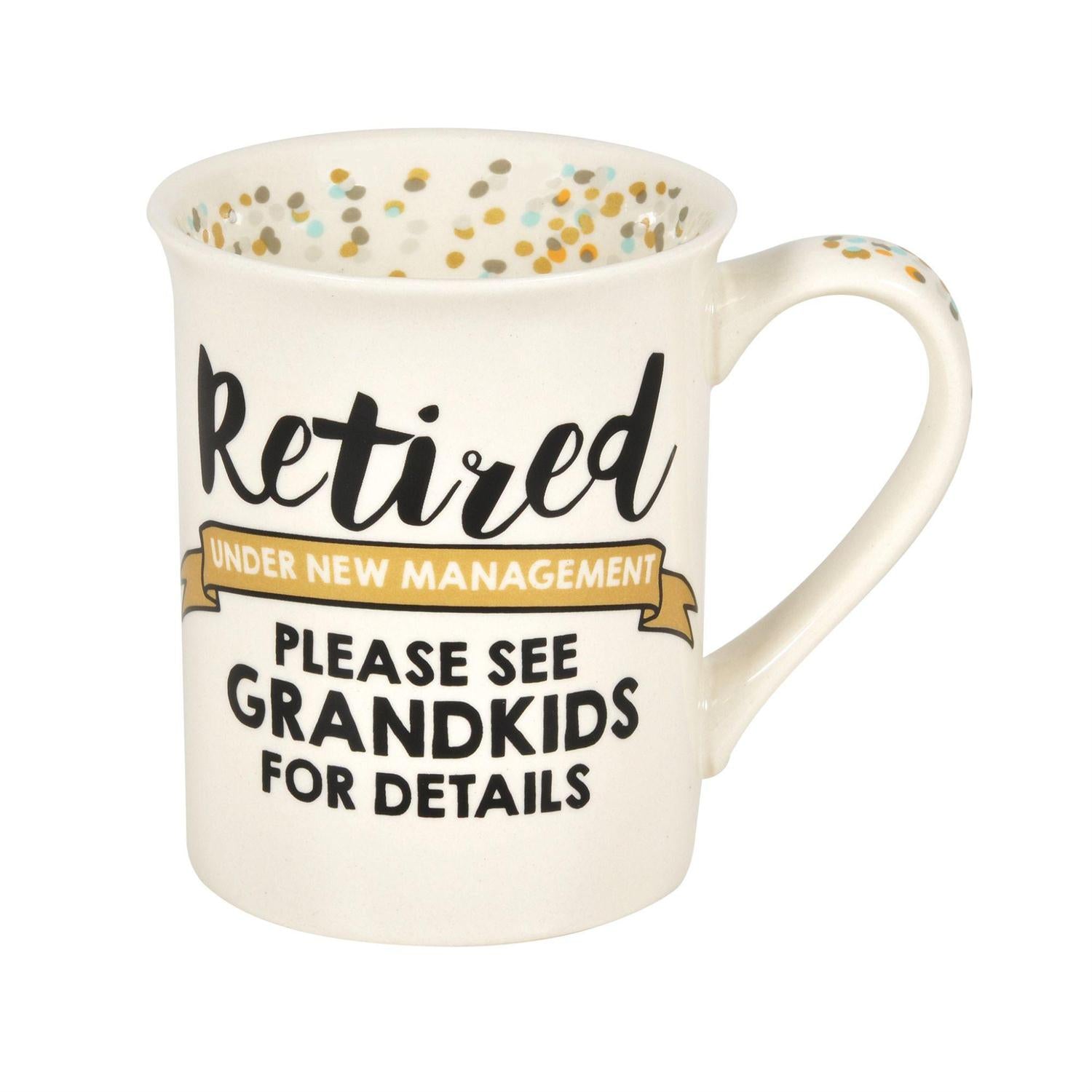 Time to celebrate your retirement with this unique mug . You deserve this time to spoil your grandkids. Designed by Our Name is Mud. This mug is giftboxed