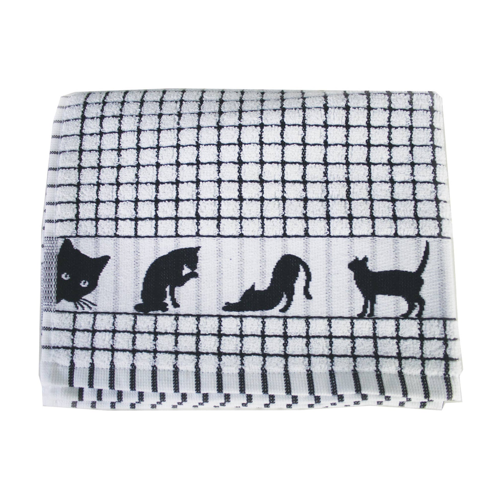This 100% cotton towel with embroidered black cats on a black and white checked background has been considered the best drying towel. Oversized at 19" X 27", the heavyweight and dense fabric weave provide multiple surfaces to absorb the maximum amount of moisture. The classic checked design will complement any kitchen design.