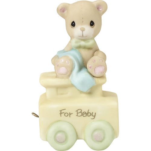 - This cozy engine of the Precious Moments Birthday Train welcomes a new baby into the world. Attaches by pull rope to any of the Birthday Train figurines from the baby through age 16