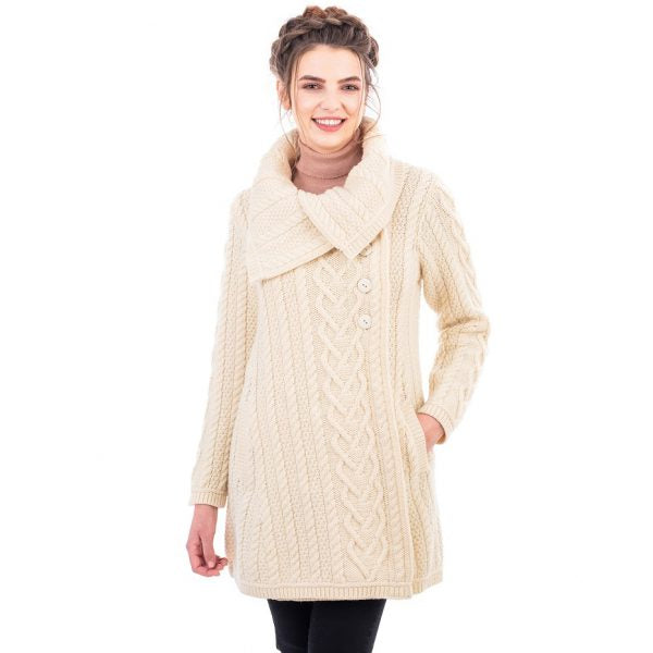 Saol Premium Knitwear Ladies Classic Cable Coat Size X-Large