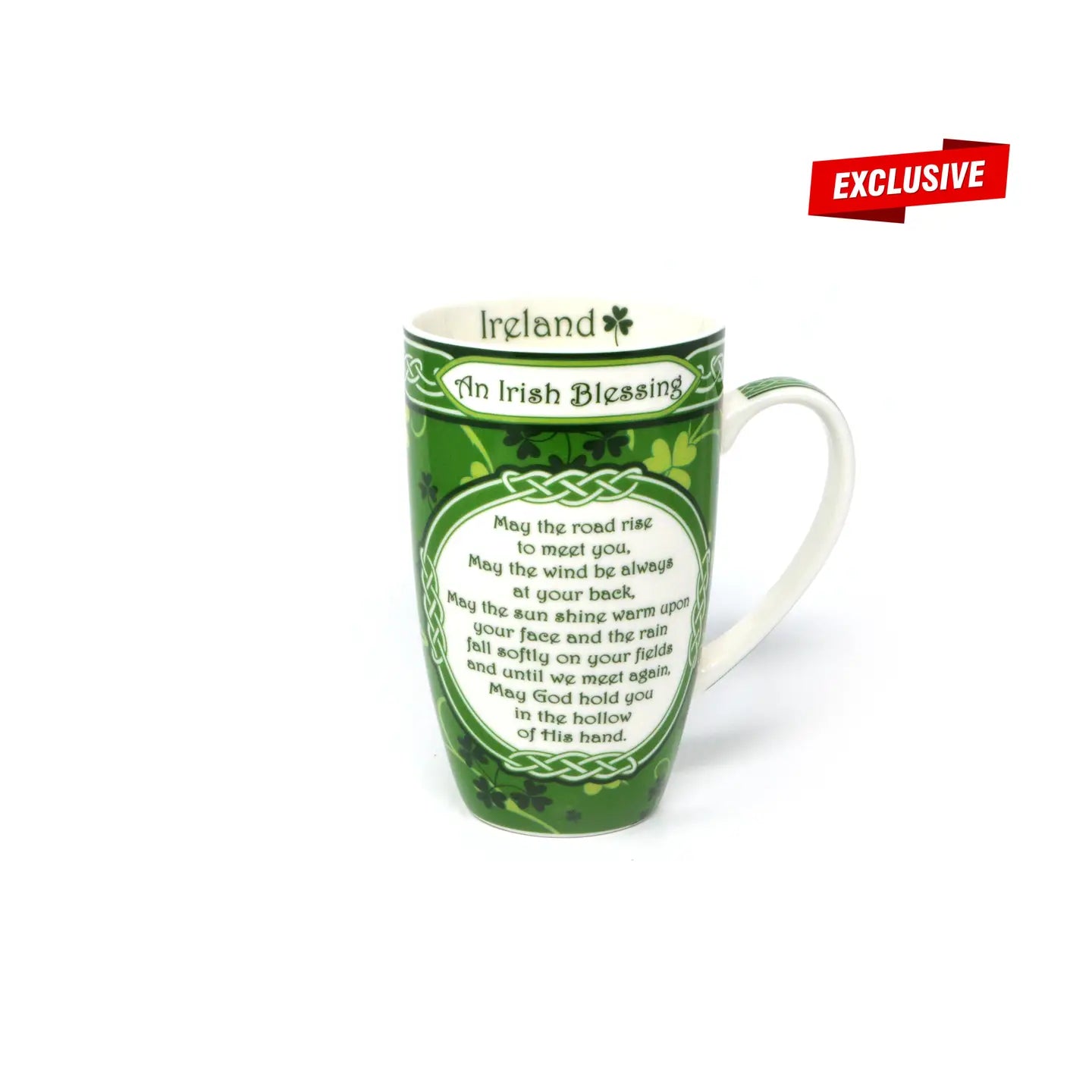 This coffee mug is a charming way to enjoy your favorite morning beverage. Featuring the classic Irish blessing "May the Road Rise to Meet You," this mug is sure to make anyone feel a little Irish. Made of Irish bone china, this mug is dishwasher and microwave safe.