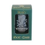 Irish Shot Glass With Shamrock and Harp Design Gift Boxed