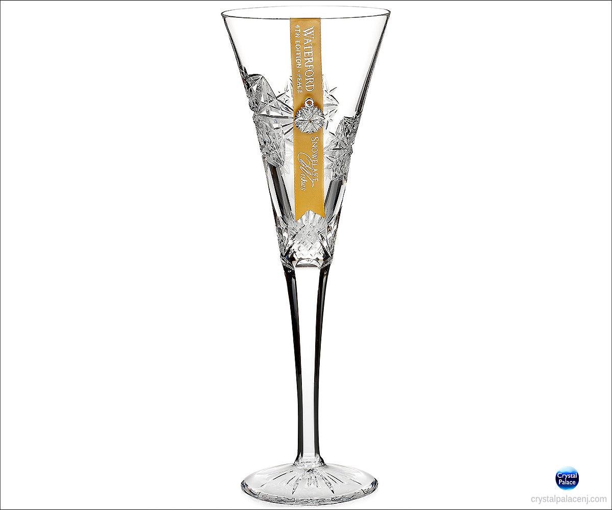 | New for 2014, the Waterford Snowflake Wishes for Peace Mooncoin Christmas Flute is a clear crystal toasting flute featuring the Waterford Mooncoin snowflake pattern, a collectible silver snowflake charm and a beautiful amber ribbon. The Snowflake Wishes Mooncoin Flute is the 4th of ten editions of Snowflake Clear Flutes and is part of the 2014 Snowflake Wishes Peace Collection. Ideal for Christmas gifts, the holiday table, New Year's celebrations and other special occasions, Snowflake Wishes Flutes hold 6 ounces, are 10.25" tall and are packaged in a special silver Waterford box with white satin lining - perfect for gift giving and storage. |