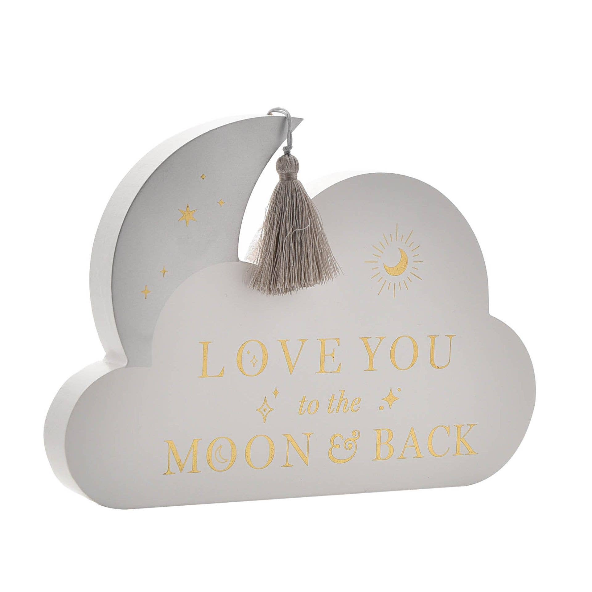 WIDDOP and Co. - Bambino Wooden Moon & Cloud Plaque "Love You"
