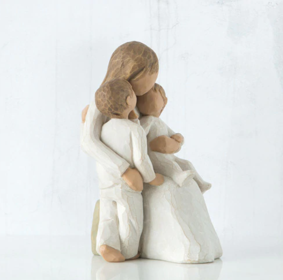 “I've learned, as a mother, sister, daughter, wife, that the communication of touch can be very healing, not only for the receiver but for the giver. Quietly is meant to be a very calming piece, especially for a mom. A lot of people think this piece is a mother with two boys, but I see it as either. (Actually, my models were two little girls with short hair!)” —Susan Lordi